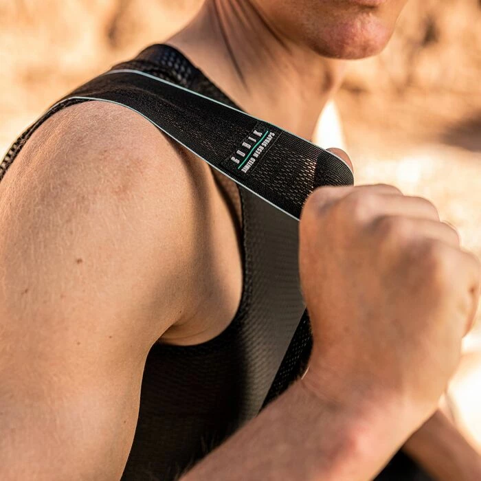 Il conserve la même longueur, bien qu’il emprunte l’attache de 75 mm du short cycliste Absolute, ainsi que l’attache gauche avec le réflecteur irisé et l’attache droite avec le logo en vinyle. La matière de l’attache est plus large, plus légère et est perforée au centre.